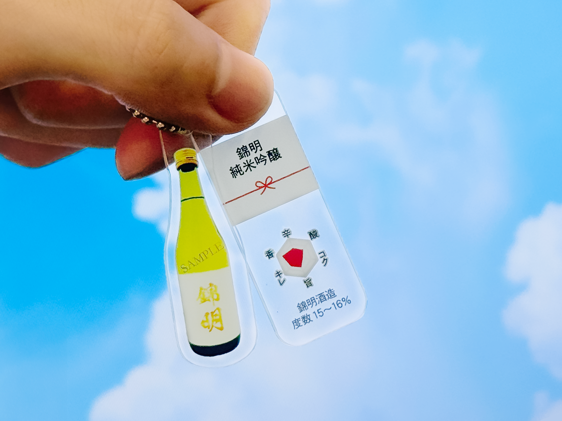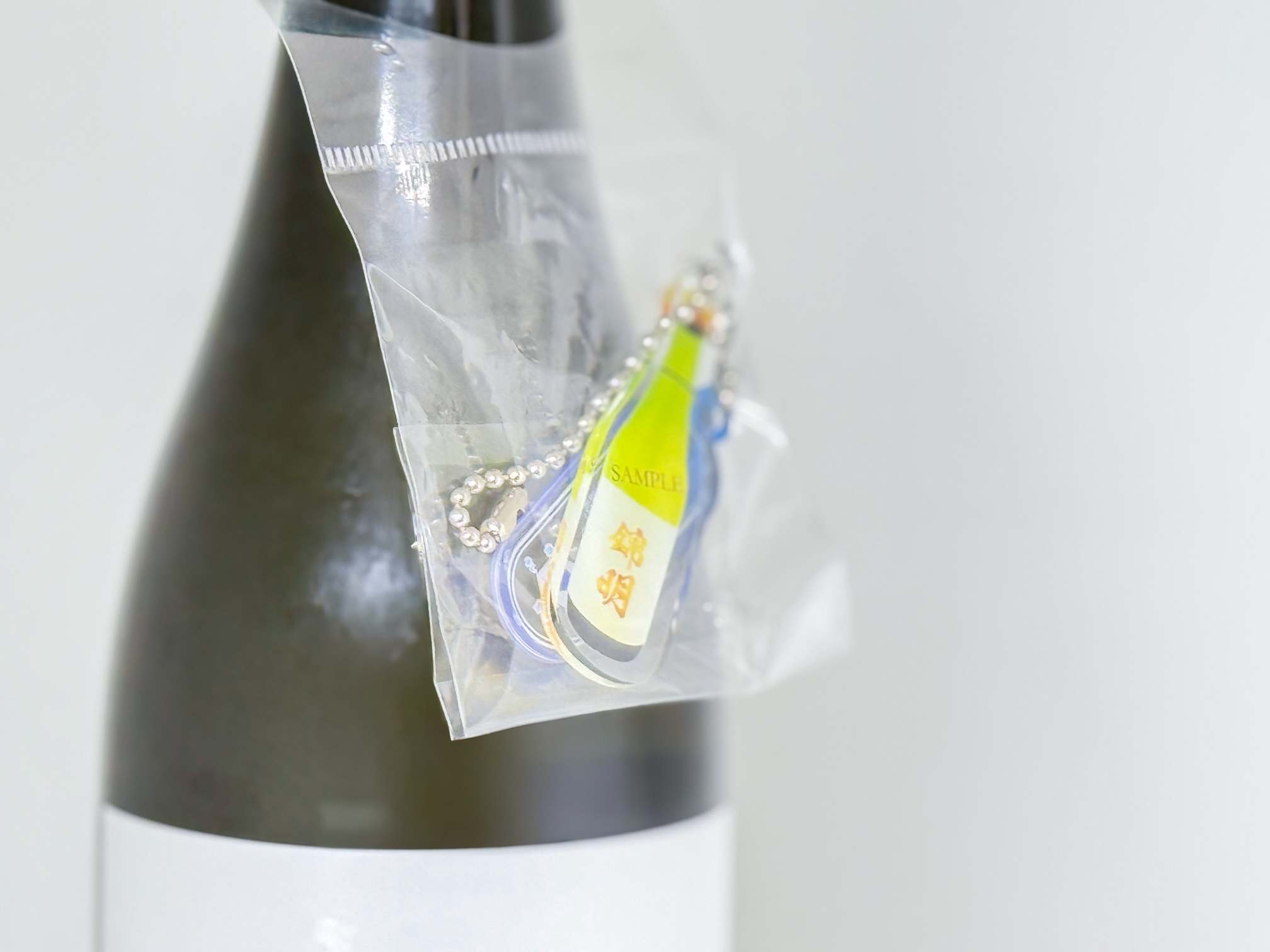 本物の酒瓶そっくりの、かわいいアクリルキーホルダー。